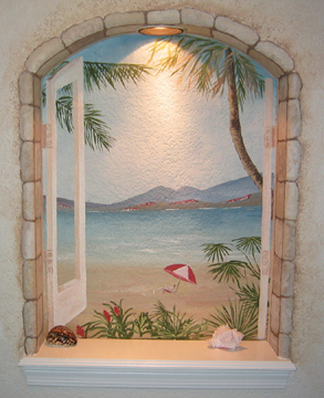 Mural for a valley resident painted inside a "cutout" in the wall.